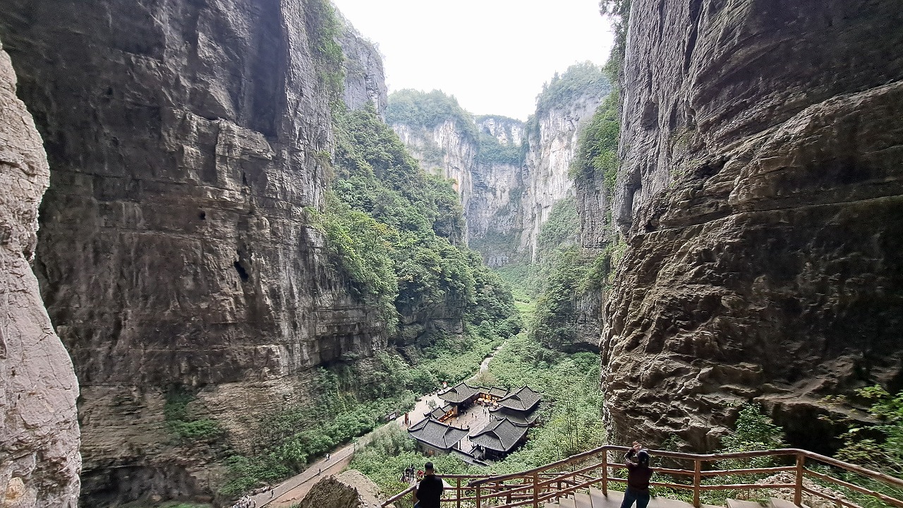 上午:天生三橋(天坑)從仙女山鎮遊客中心坐景區接駁車,約30 分鐘抵達景區入口